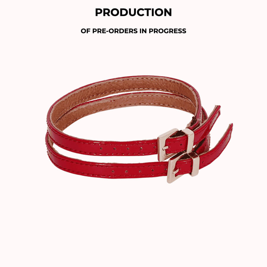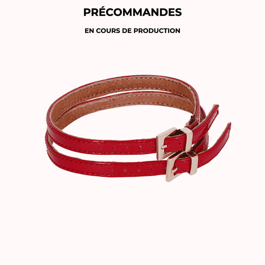 - Matière extérieure : Cuir verni rouge