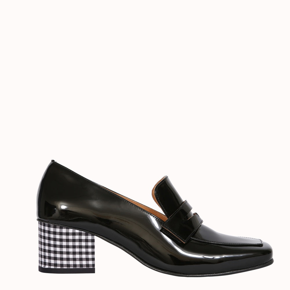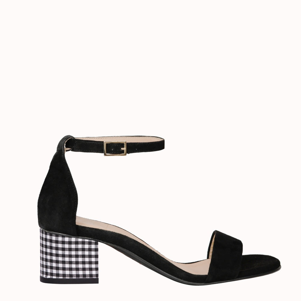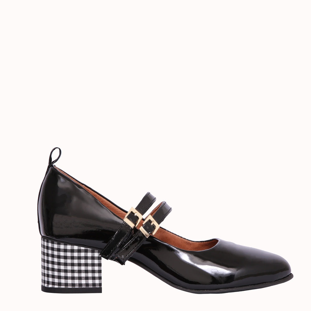 The Dessine-moi heels in black and white vichy gingham create a graphic look. Iconic lines that define the step and reinvent retro style with precision and modernity.
