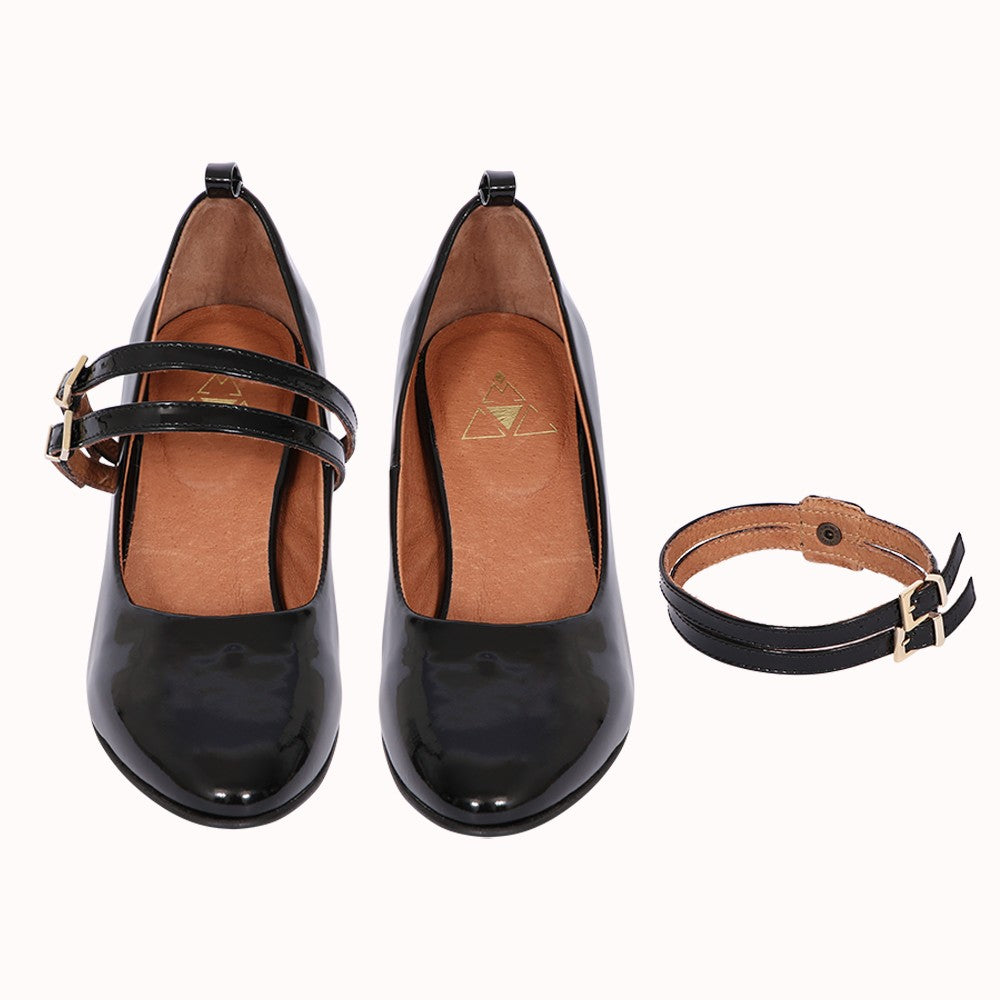Les babies à double brides de cou-de-pied amovibles et interchangeables pour une personnalisation de ce modèle iconique rétro. Il est possible également d'insérer une bride autour de la cheville, en plus.