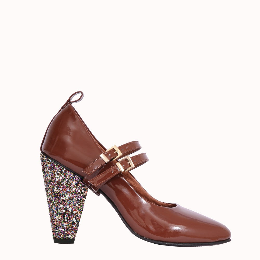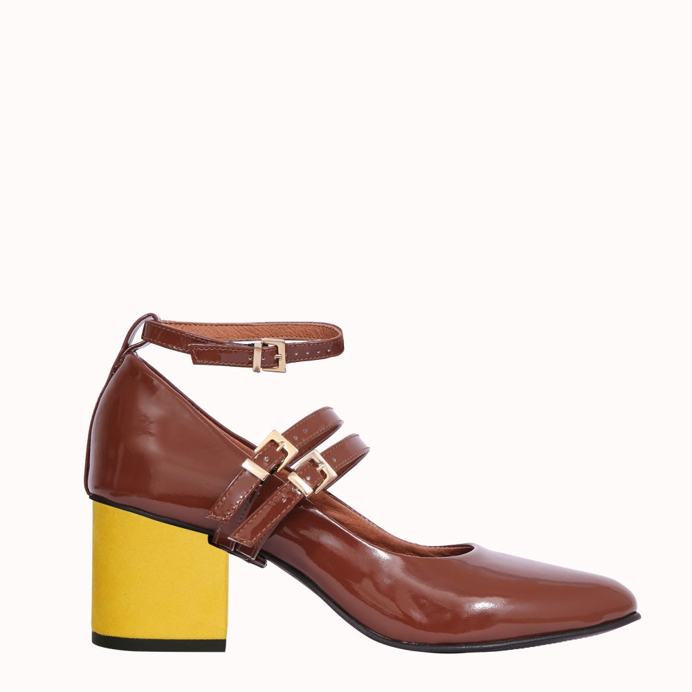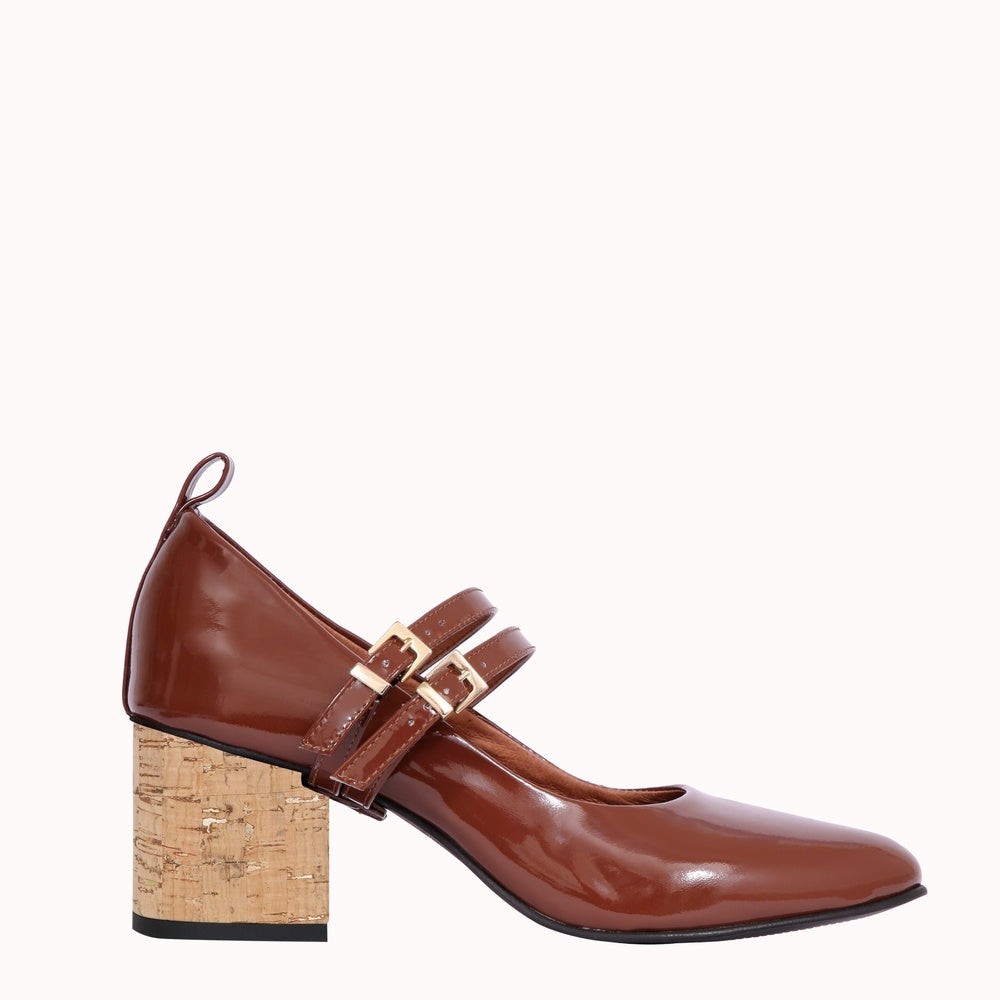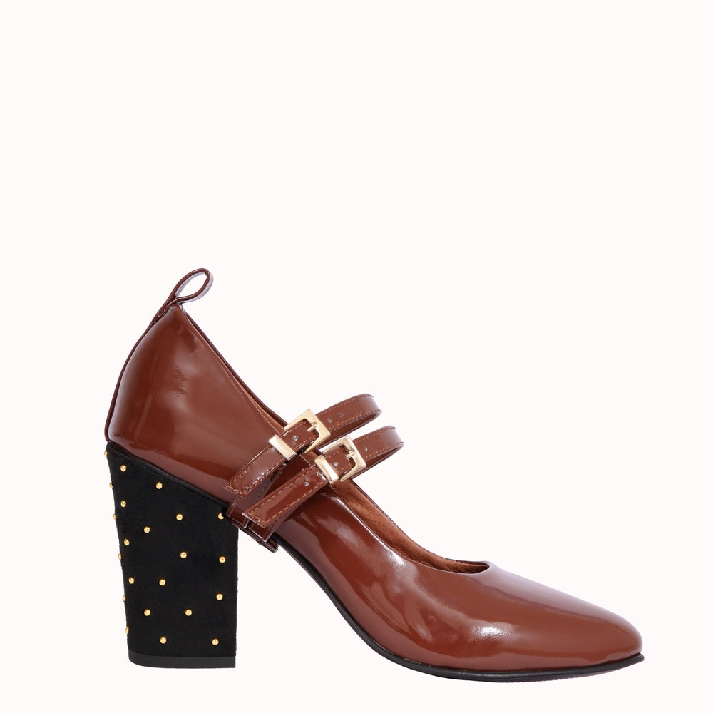 - Tige en cuir verni marron