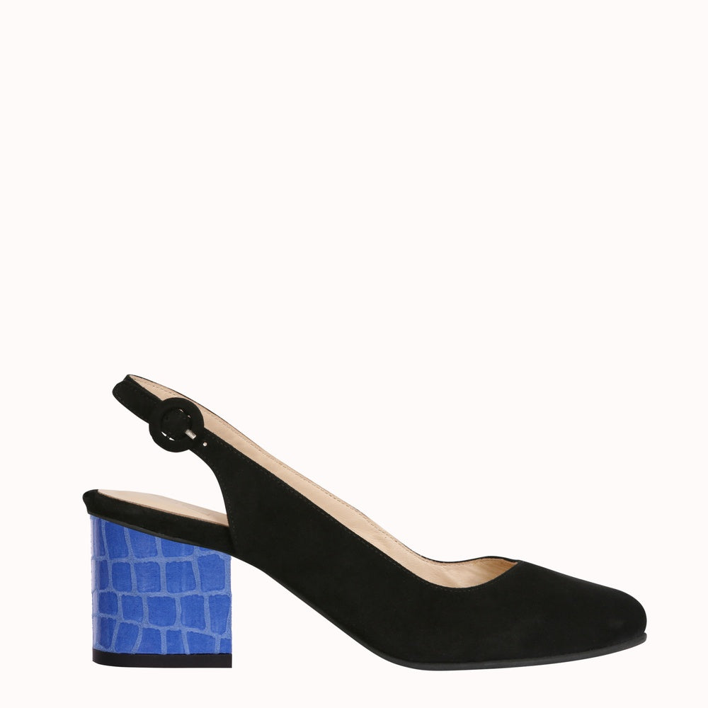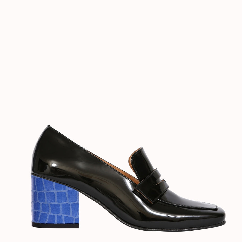 Les talons Saisis-moi en croco bleu affirment le style avec aplomb. Une texture marquée, une couleur profonde : l’allure se précise, le regard s’arrête, l’instant est saisi.